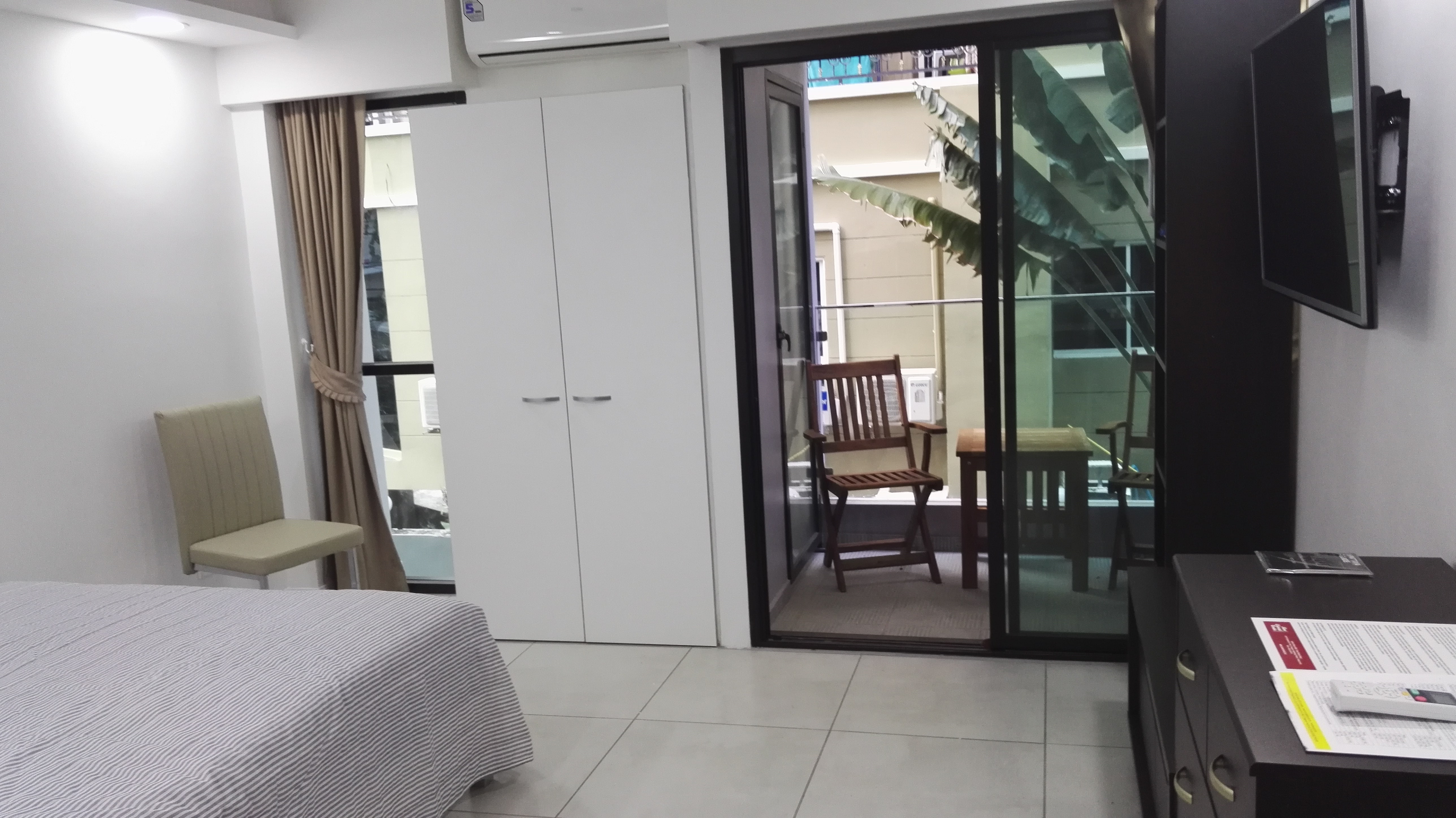 Vaalea ulkoasu tekee huoneista tilavia, ja suuret ikkunat tuovat Thaimaan auringon jopa sisätiloihin. Viihtyisällä parvekkeella taas voit siemailla aamukahvisi palmupuiden lomassa.
