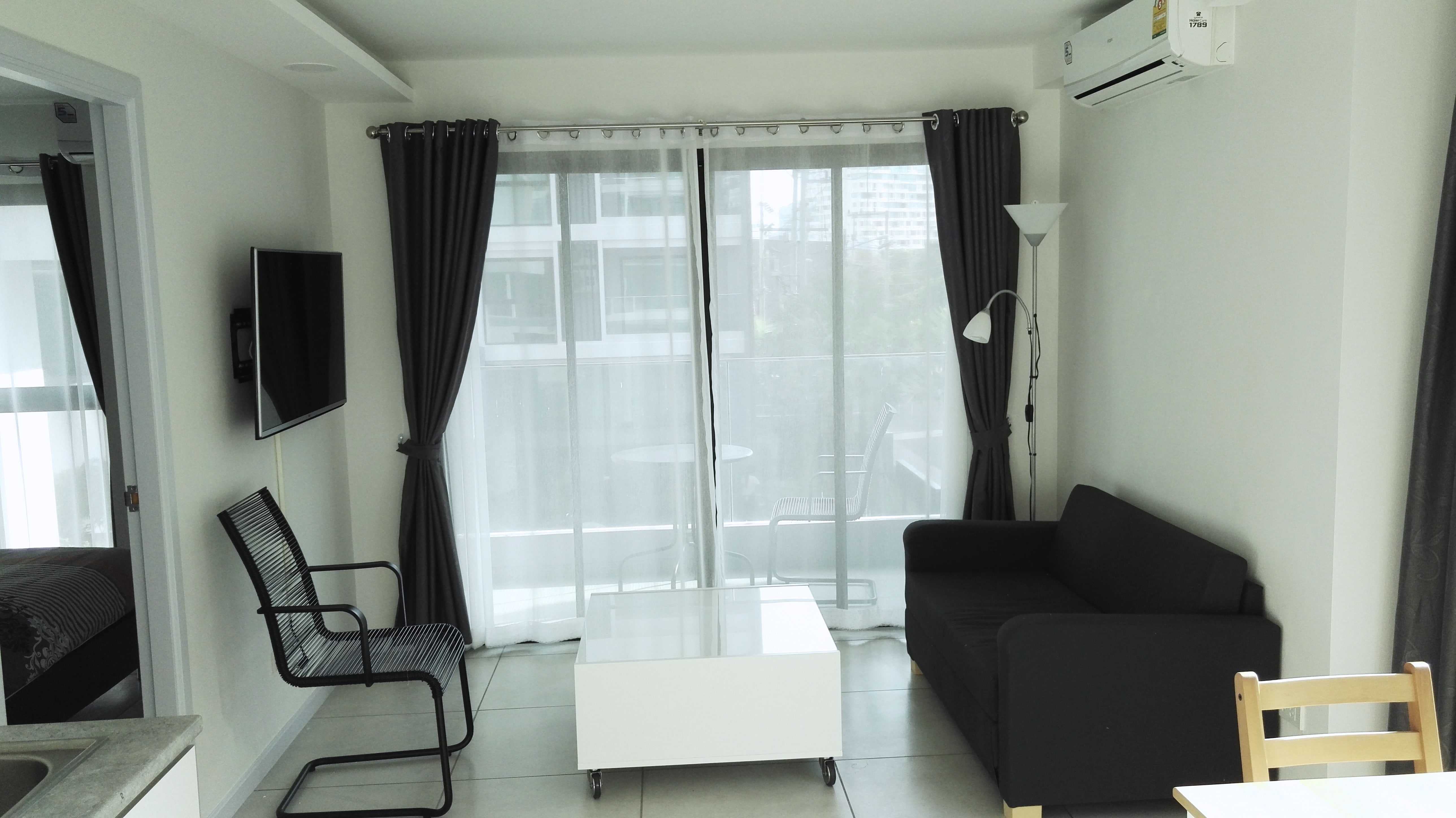 Vaalea ulkoasu tekee huoneista tilavia, ja suuret ikkunat tuovat Thaimaan auringon jopa sisätiloihin. Viihtyisällä parvekkeella taas voit siemailla aamukahvisi palmupuiden lomassa.